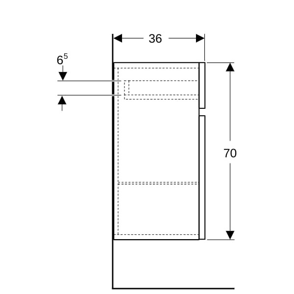 Geberit Seitenschrank Renova Plan 39x70x36cm, 1 Tür, 1 Schublade, weiß, lackiert hochglänzend K20597365