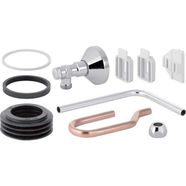 bestehend aus Eckventil 1/2", Rosette, CU-Verbindungsrohr, Spülrohrinnenverbinder Ø 44/55 mm, Befestigungsmaterial