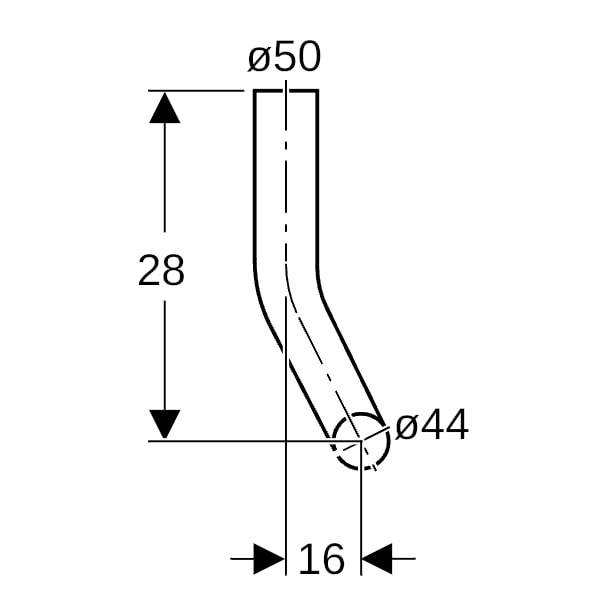 Geberit Spülbogen 16 cm nach rechts, gekröpft, 90Grad, d= 50mm, 28x21cm, weiß