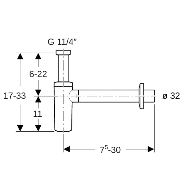 Geberit Tauchrohrgeruchsverschluss Abgang horizontal, für Waschbecken, G 1 1/4 x 32 mm, hochglanz-verchromt K7924052