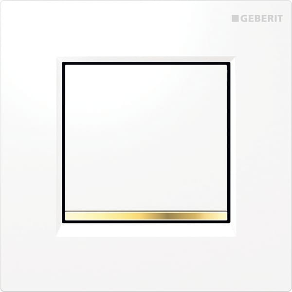 Geberit Typ 20 Betätigungsplatte, eckig, für Urinalsteuerung mit pneumatischer Spülauslösung: Platte, Taste: weiß-alpin / glänzend, Designstreifen: goldfarben / glänzend