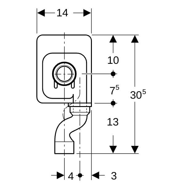 bestehend aus Anschlussbogen aus PE-HD, 50 mm, Aussparungsklotz, Gehäuse