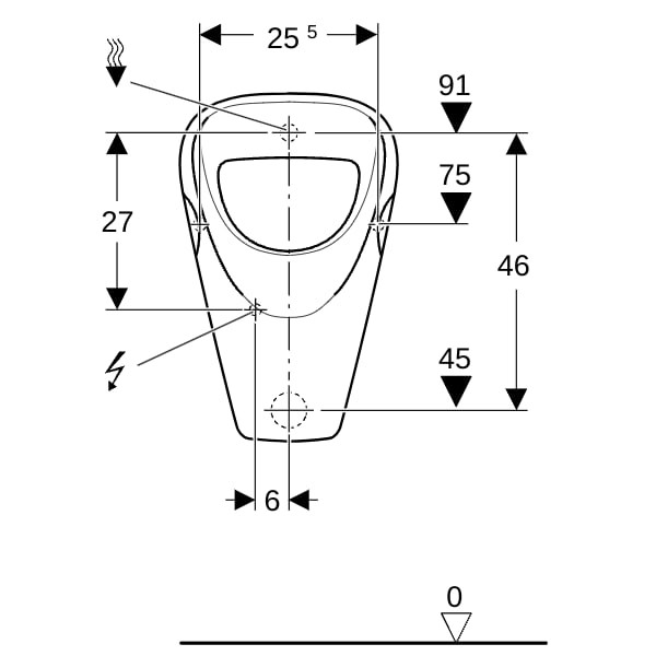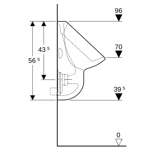 35 x 56,5 x 35 cm, aus Sanitärkeramik, zum Betrieb mit automatischer, wassersparender Spülung, zum Betrieb mit manueller oder automatischer Spülauslösung, für Unterputz-Urinalsteuerungen, für Aufputz-Urinalsteuerungen verdeckt, mit Spülrand, Geruchsverschluss verdeckt, erfüllt Anforderungen nach EN 13407, sichtbare Befestigung