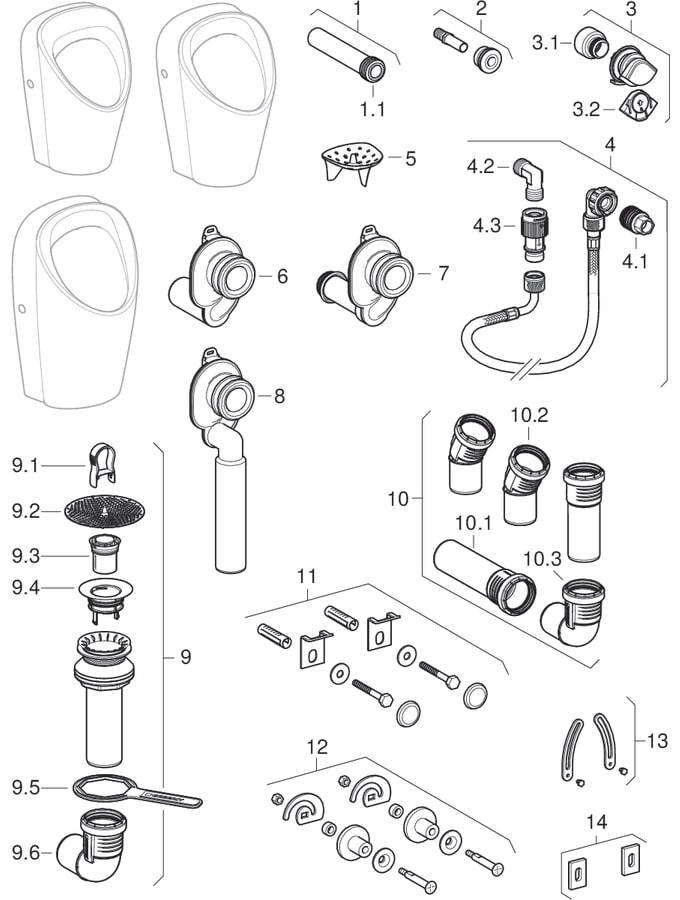 zum Betrieb mit automatischer, wassersparender Spülung, zum Betrieb mit manueller oder automatischer Spülauslösung, für UP-Urinalsteuerungen, für UP-Urinalsteuerungen verdeckt, für AP-Urinalsteuerungen verdeckt, Breite 35 cm
