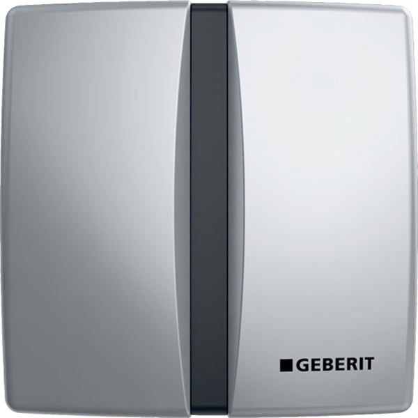Geberit Urinalsteuerung mit elektronischer Spülauslösung, Batteriebetrieb, Abdeckplatte, eckig, aus Zinkdruckguss: chrom / matt