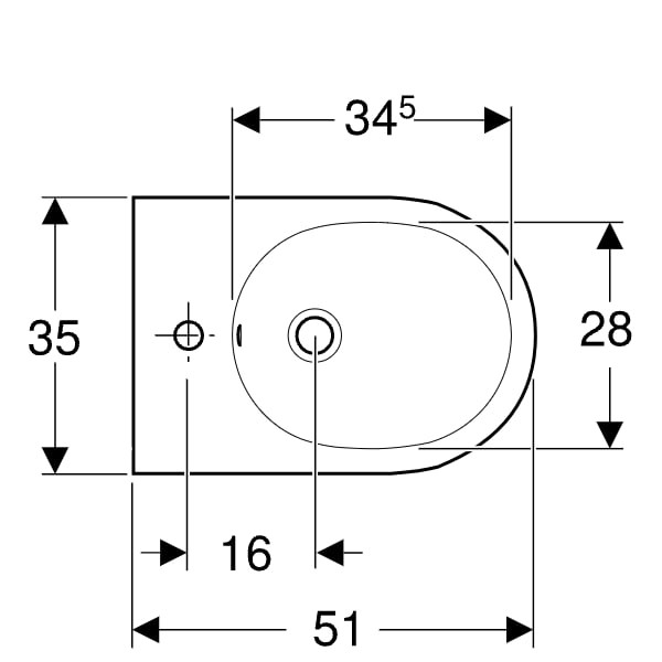 Geberit Wand-Bidet Acanto weiß, geschlossen, mit Hahnloch, Überlauf