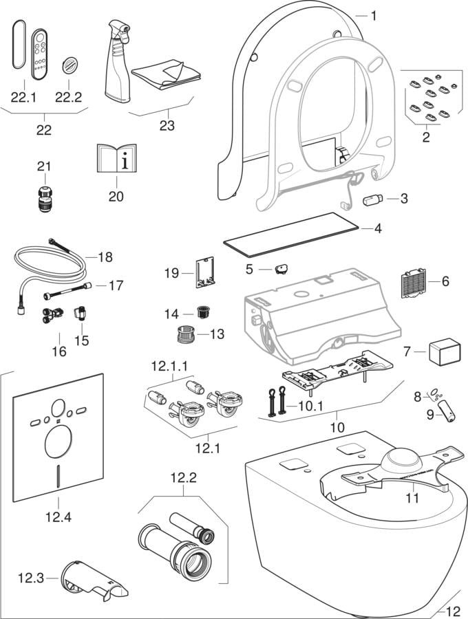 spülrandlos, WC-Sitzring und WC-Deckel mit SoftClosing, WC-Deckel mit SoftOpening, Analdusche mit WhirlSpray-Duschtechnologie, Oszillierdusche (automatische Vor- und Rückwärtsbewegung des Duscharms), Duschstrahlstärke in fünf Stufen einstellbar, automatische Vor- und Nachreinigung der Duschdüse mit Frischwasser, Warmwasserbereitung über Durchlauferhitzer, Entkalkungsprogramm, Wasseranschluss seitlich links verdeckt hinter WC-Keramik, Netzanschluss mit 3adriger flexibler Mantelleitung, seitlich rechts verdeckt hinter WC-Keramik, Zulassung nach DIN EN 1717/DIN EN 13077, bestehend aus Wasseranschlussset für Sigma Unterputz-Spülkasten 12 cm und Omega Unterputz-Spülkasten 12 cm, Einbauhöhe 112 cm, Kupplungsbuchse für Netzanschluss, Schallschutzset, Spritzschutz, Anschlussset für WC, Ø 90 mm, Befestigungsmaterial