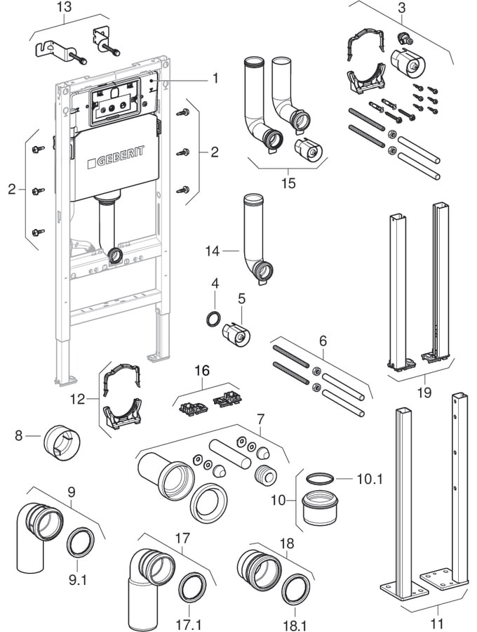 Geberit Wand-WC-Element Duofix Basic 112cm, mit Delta UP-Spülkasten 12 cm