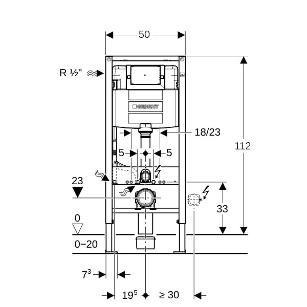 | Dimension | mit Omega UP-Spülkasten 12 cm |
