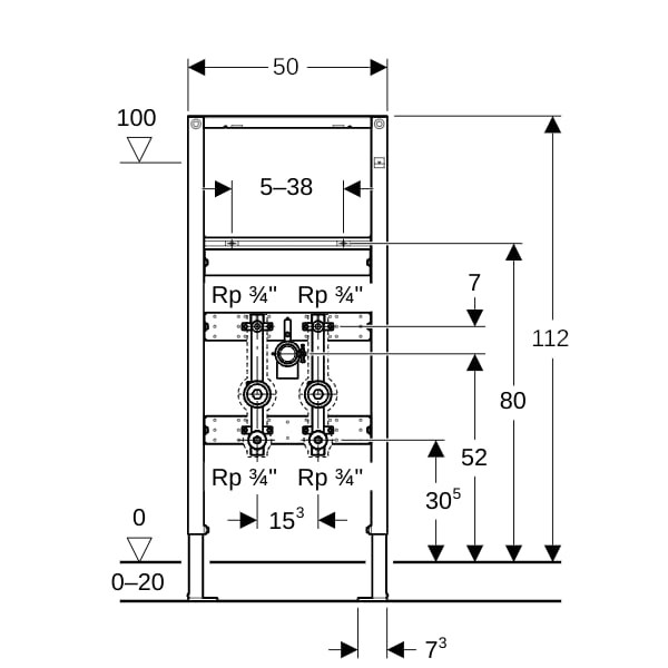 zum Einbau in teil-/raumhohe Vorwandinstallationen, zum Einbau in raumhohe Installationswände, zum Einbau in teil- oder raumhohe Duofix Systemwände, zur Montage von Waschtischen, für Standarmaturen, für Fußbodenaufbauten 0-20 cm, zum Einbau von zwei Messkapseln mit Gewinde KOAX G 2, selbsttragender Rahmen pulverbeschichtet, Rahmen mit Bohrlöchern Ø 9 mm für Befestigung im Holzständerbau, Fußstützen verzinkt verstellbar 0-20 cm, Fußstützen mit Rutschhemmung, Fußplatten drehbar, Fußplattentiefe passend zum Einbau in U-Profile UW 50 und UW 75 und Duofix Systemschienen, Befestigungsabstand Waschtisch 5-38 cm, Befestigung für Anschlussbogen höhenverstellbar und schallgedämmt, Traverse Armatur höhen- und tiefenverstellbar, Wasserzählerstrecken schalldämmend eingebaut, mit zwei Messkapseln KOAX G 2 bestückbar, mit Wasserzählerstrecke aus Rotguss, Rp 3/4, mit Anschluss-T-Stück G 1/2, mit UP-Kugelhahn, R 3/4, Dämmung aus EPP, Schutzstopfen für einmalige Druckprüfung mit Kaltwasser bis max. 15 bar/1500 kPa, bestehend aus 2x Schutzstopfen, Anschlussbogen aus PE-HD, Ø 50 mm, Dichtung Ø 44/32 mm, 2x Gewindestangen M10 und Befestigungsmaterial