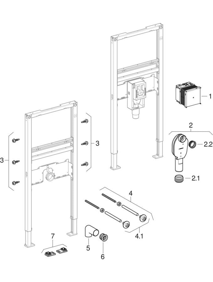 für Trockenbau, zum Einbau in teil- oder raumhohe Vorwandinstallationen, zum Einbau in raumhohe Installationswände, zum Einbau in teil- oder raumhohe Geberit Duofix Systemwände, zur Montage von Waschtischen, für Waschtischarmaturen Piave und Brenta, Standmontage, für UP-Funktionsbox, für Fußbodenaufbauten 0-20 cm, selbsttragender Rahmen pulverbeschichtet, Rahmen mit Bohrlöchern ø 9 mm für Befestigung im Holzständerbau, Fußstützen verzinkt, Fußstützen verstellbar 0-20 cm, Fußstützen mit Rutschhemmung, Fußplatten drehbar, Fußplattentiefe passend zum Einbau in U-Profile UW 50 und UW 75 und Geberit Duofix Systemschienen, Befestigungsabstand Waschtisch 5-38 cm, Wasseranschluss MasterFix- und MeplaFix-fähig, Wasseranschluss an UP-Gehäuse, unten, Befestigung für Anschlussbogen höhenverstellbar und schallgedämmt, UP-Gehäuse für Waschtischarmatur, Standmontage, für UP-Funktionsbox, vormontiert, Absperreinheiten in UP-Gehäuse integriert, Anschlussklemme für Elektroanschluss im UP-Gehäuse, mit Anschlussbogen aus PE-HD, ø 50 mm, Dichtung ø 44/32 mm, 2 Gewindestangen M10, Bauschutz mit Deckel, für UP-Gehäuse, Befestigungsmaterial