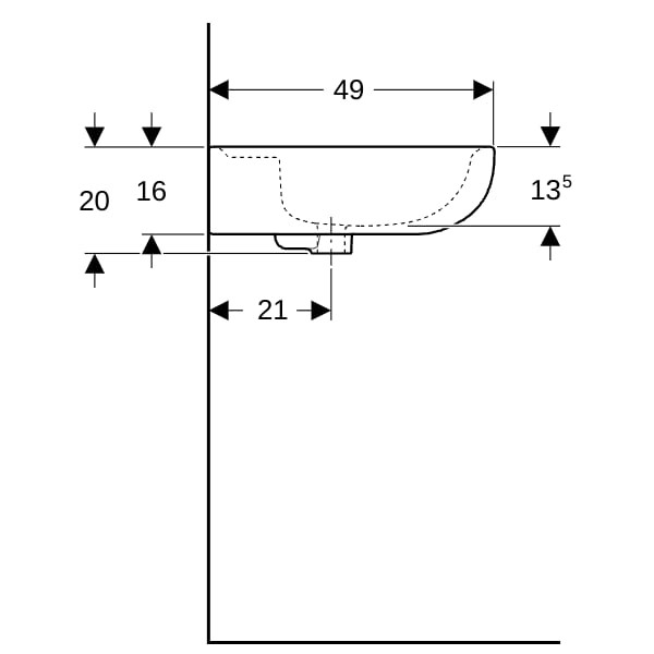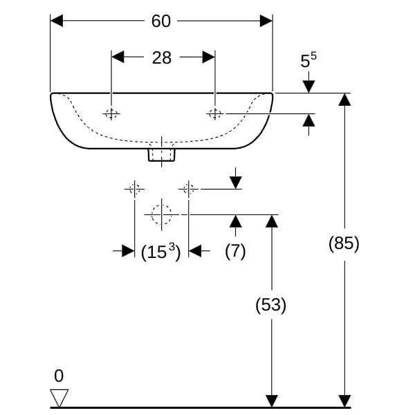 Geberit Waschtisch Renova 60 x 49 cm, weiß, ohne Hahnloch, ohne Überlauf, vollständig geschlossen