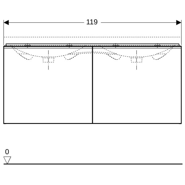 Geberit Doppelwaschtisch-Unterschrank Acanto 1 Schublade, 1 Innenschublade, Breite 119cm, lava matt / lava glänzend / lava matt K22757682