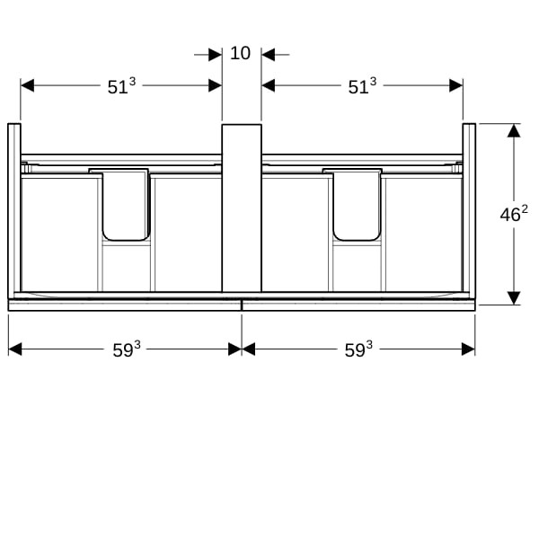Geberit Doppelwaschtisch-Unterschrank Acanto 1 Schublade, 1 Innenschublade, Breite 119cm, weiß hochglanz / weiß glänzend / weiß matt K22757678