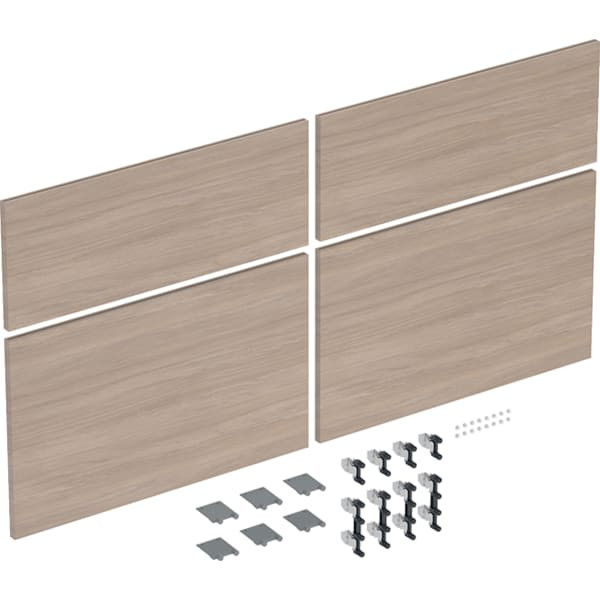Geberit iCon Set Schubladenfronten für Unterschrank für Doppelwaschtisch, mit vier Schubladen: Breite Waschtisch=120cm, Eiche / Melamin Holzstruktur