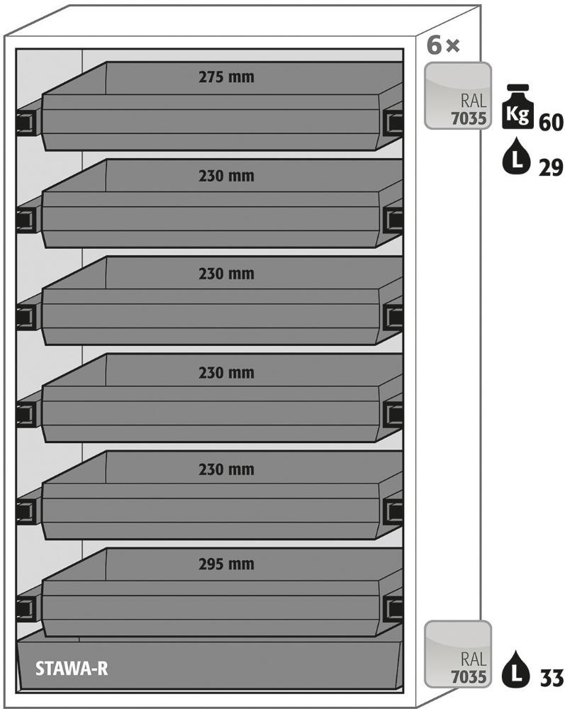Gefahrstoffschrank S-Classic-90, mit 6 Auszugswannen