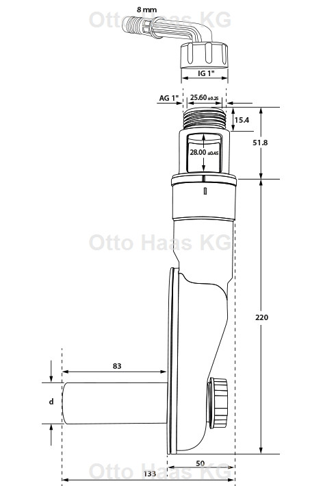 HAAS Abwasseranschlusssiphon mit Winkelschlauchtülle Durchm.: 8mm, nach
