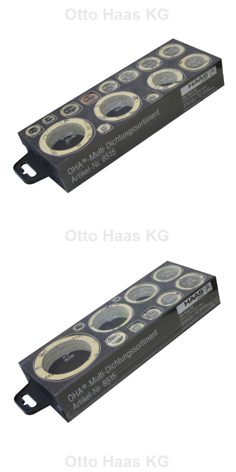 mit EURO-Loch-Aufhängung und Inhaltsverzeichnis auf bedruckter Klarsicht-Schiebehülle, bestehend aus: 9x OHA-Press-Dichtungen für Überwurfmuttern "W 270" und "UBA" 3/8" 17 x 24 x 1,8 mm, 9x OHA-Press-Verschraubungs-Dichtungen "W 270" und "UBA" 3/8" 19 x 27 x 1,8 mm, 9x OHA-Press-Verschraubungs-Dichtungen "W 270" und "UBA" 1/2" klein, 21 x 30 x 1,8 mm, 9x OHA-Press-Verschraubungs-Dichtungen "W 270" und "UBA" 3/4" 27 x 38 x 1,8 mm, 9x OHA-Press-Verschraubungs-Dichtungen "W 270" und "UBA" 1" 32 x 44 x 1,8 mm, 9x OHA-Press-Verschraubungs-Dichtungen "W 270" und "UBA" 1 1/4" 42 x 55 x 1,8 mm, 9x OHA-Press-Verschraubungs-Dichtungen "W 270" und "UBA" 11/2" 46 x 62 x 1,8 mm, 9x OHA-Press-Dichtungen für Überwurfmuttern "W 270" und "UBA" 1/2" 10 x 18 x 1,8 mm, 9x OHA-Spezial-Verschraubungs-Dichtung 18,5 x 11 x 2 mm, 9x OHA-Press-Dichtungen für Überwurfmuttern "W 270" und "UBA" 12 x 18 x 1,8 mm, 9x OHA-Press-Verschraubungs-Dichtungen "W 270" und "UBA" 2" 60 x 78 x 1,8 mm, 9x OHA-Spezial-Dichtungen für Überwurfmuttern 3/8" 10 x 15 x 2 mm, 9x OHA-Spezial-Dichtungen zu Plattenheizkörper 3/8" 15 x 24 x 2 mm, 9x OHA-Press-Wassermesser-Dichtungen für Heißwasserzähler 1" 29 x 37 x 1,8 mm, 9x OHA-Press-Dichtungen DIN 7715 P2 "W 270" und "UBA" 48 x 56 x 1,8 mm, 9x OHA-Press-Dichtungen DIN 7715 P2 "W 270" und "UBA" 37 x 44 x 1,8 mm, 11x OHA-Spezial-Dichtungen DIN 7715 P2 10 x 14 x 2 mm, 11x OHA-Spezial-Dichtungen DIN 7715 P2 6 x 10 x 2 mm, 11x OHA-Press-Dichtung einseitig selbstklebende Dichtungen, 17 x 23 x 2 mm, 8x Lederringe 16 x 23 x 2 mm, 9x OHA-Press-Dichtungen für Überwurfmuttern "W 270" und "UBA" 8 x 15 x 1,8 mm, 9x OHA-Press-Verschraubungs-Dichtungen "W 270" und "UBA" 17 x 23 x 1,8 mm, 9x OHA-Press-Verschraubungs-Dichtungen "W 270" und "UBA" 22 x 30 x 1,8 mm, 9x OHA-Press-Verschraubungs-Dichtungen "W 270" und "UBA" 23 x 34 x 1,8 mm, 9x OHA-Press-Verschraubungs-Dichtungen "W 270" und "UBA" 32 x 39 x 1,8 mm
