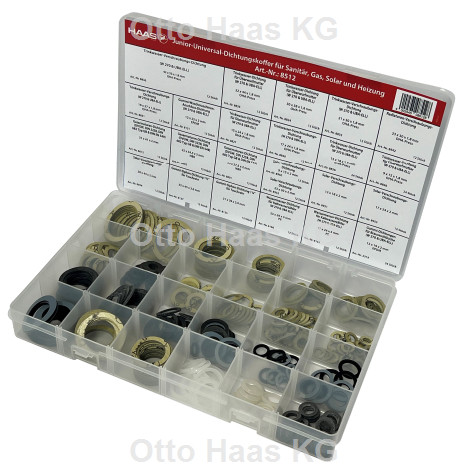 24x Trinkwasser-Dichtung für Überwurfmutter, OHA-Press, W 270 & UBAELL 9 x 15 x 1,8 mm, 24x Trinkwasser-Dichtung für Überwurfmutter, OHA-Press, W 270 & UBAELL 13 x 18 x 1,8 mm, 12x Trinkwasser-Dichtung für Überwurfmutter, OHA-Press, W 270 & UBAELL 15 x 24 x 1,8 mm, 12x Trinkwasser-Verschraubungsdichtung, OHA-Press, W 270 & UBA-ELL 17 x 24 x 1,8 mm, 12x Trinkwasser-Verschraubungsdichtung, OHA-Press, W 270 & UBA-ELL 19 x 27 x 1,8 mm, 12x Trinkwasser-Verschraubungsdichtung, OHA-Press, W 270 & UBA-ELL 21 x 30 x 1,8 mm, 12x Radiatoren-Verschraubungsdichtung, OHA-Press, W 270 & UBA-ELL 23 x 30 x 1,8 mm, 12x Trinkwasser-Dichtung für Überwurfmutter, OHA-Press, W 270 & UBAELL 30 x 38 x 1,8 mm, 12x Tauchrohranschlussdichtung 1¼", OHA-Press, W 270 & UBA-ELL 30 x 39 x 1,8 mm, 12x Trinkwasser-Verschraubungsdichtung, OHA-Press, W 270 & UBA-ELL 32 x 44 x 1,8 mm, 12x OHA-Press Tauchrohrdichtung 1½", W 270 & UBA-ELL 35 x 45 x 1,8 mm, 12x Trinkwasser-Verschraubungsdichtung, OHA-Press, W 270 & UBA-ELL 42 x 55 x 1,8 mm, 12x Solar-Verschraubungsdichtung 9 x 25 x 2 mm, 12x Solar-Verschraubungsdichtung 12 x 18 x 2 mm, 12x Solar-Verschraubungsdichtung 17 x 24 x 2 mm, 12x Solar-Verschraubungsdichtung 23 x 30 x 2 mm, 12 Solar-Verschraubungsdichtung 30 x 44 x 2 mm, 24x Gummi-Dichtungen für Brauseschläuche, EPDM, W 270 & UBA-ELL 12 x 19 x 2 mm, 12x Gummi-Waschmaschinen-Anschlußdichtung, EPDM, W 270 & UBA-ELL 12 x 23 x 2 mm, 12x Wassermesser-Dichtungen für Kaltwasserzähler, PE, W 270 & UBA-ELL 17 x 24 x 3 mm, 12x Wassermesser-Dichtungen für Kaltwasserzähler, PE, W 270 & UBA-ELL 23 x 29 x 3 mm, 12x Gasarmaturen-Dichtung, Gummi, DVGW, DIN 3258, DIN 682 Typ GB & DIN EN 549 20 x 27,5 x 2 mm, 12x Gasarmaturen-Dichtung, Gummi, DVGW, DIN 3258, DIN 682 Typ GB & DIN EN 549 25 x 34,5 x 2 mm, 12x Gasarmaturen-Dichtung, Gummi, DVGW, DIN 3258, DIN 682 Typ GB & DIN EN 549 21 x 41 x 2 mm