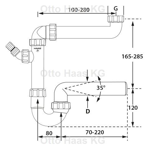 HAAS Kugelgelenkraumsparsiphon 1 1/2 Zoll, DN 50 mit 1 Geräteanschluss