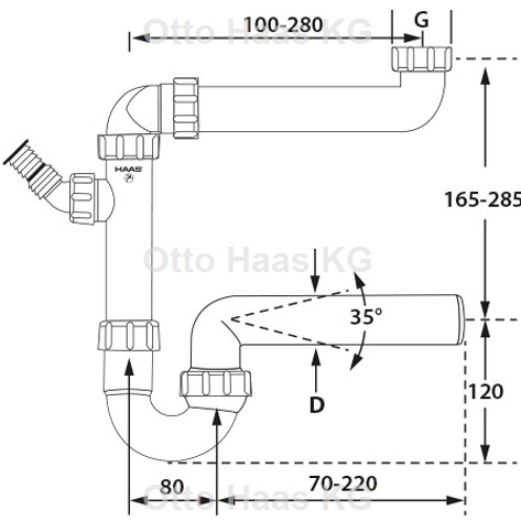 HAAS Kugelgelenkraumsparsiphon 2 Zoll, DN 50 mit 1 Geräteanschluss