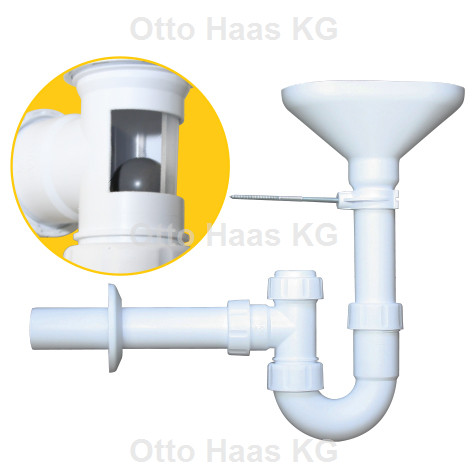 HAAS PP-Trichter-Kugelverschluss-Siphon DN 40/50/56 mit Reinigungsöffnung
