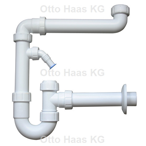 HAAS Raumsparsiphon DN 40/50, Geräteanschlüsse 1 1/2" und 1 1/4", Polypropylen, weiß