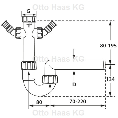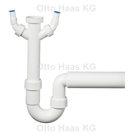 HAAS Spülensiphon DN 50, 1 1/2", mit 2 Geräteanschlüssen 3/4" und 1", Polypropylen, weiß