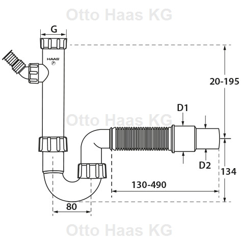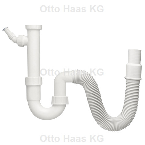 HAAS Spülensiphon DN40/50, 1 1/2", mit flexiblem Schlauch und Geräteanschluss, Polypropylen, weiß