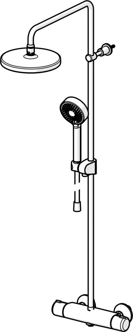 DN 15, Heißwasserversorgung max. 65°C, Arbeitsdruck 1-10 bar, Durchfluss bei 3 bar (mit Regler) 9 l/min, Anschlussgröße G3/4, Kopfbrausengröße Ø 200 mm, Handbrausengröße Ø 95 mm, Installationsabstand 150 ± 3 mm, Sicherungseinrichtung (EN1717) EB, Geräuschklasse I (ISO 3822), Material Messing, Handbrause, Brausestange, Kopfbrause, verstellbare Brausestangehalterung, variable Montagemöglichkeit, schwenkbares Kugelgelenk, Anti-Kalk-Technik, Twist guard, Verdrehschutz für Brauseschlauch, S-Anschlüsse, Außengewinde, Abdeckung(en), Schalldämpfer, Oberteil mit keramischen Dichtscheiben zur Wassermengeneinstellung für einen Abgang, Rückfussverhinderer, Schmutzflter, Drehumsteller, druckunabhängig, integrierter Umsteller mit Absperrung, Sicherheitssperre gegen Verbrühen bei 38°C, mehr Sicherheit durch minimales Erwärmen des Armaturengehäuses, Temperatureinstellgriff, Durchfusseinstellgriff, EcoFunktion für die Wassermenge, Sicherheitshebel, 3-strahlig, kürzbar