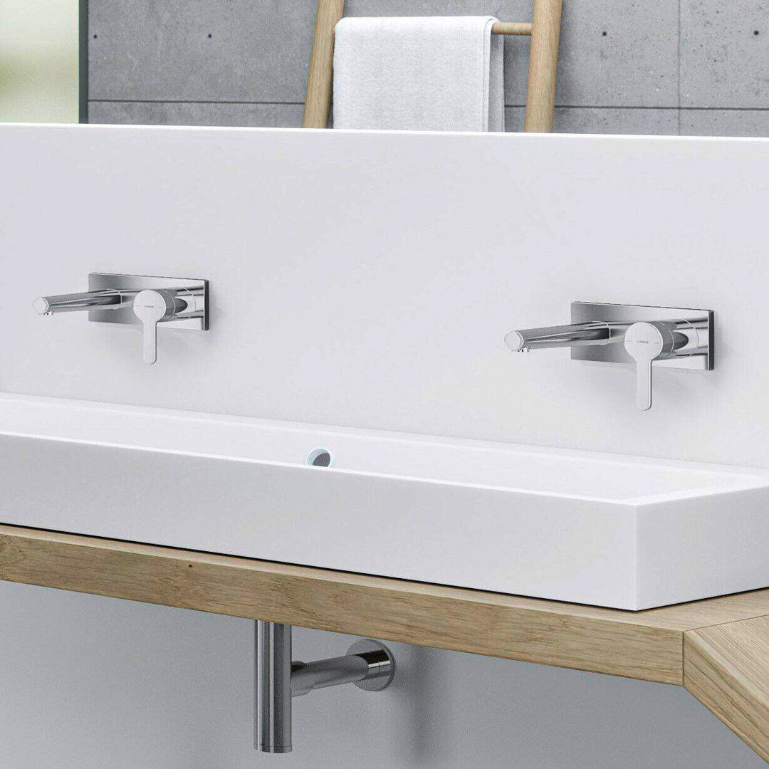 HANSA Fertigmontageset HANSADESIGNO Style 2-Loch-Waschtisch-Einhebelmischer, Wandmontage, Ausladung 194mm, chrom