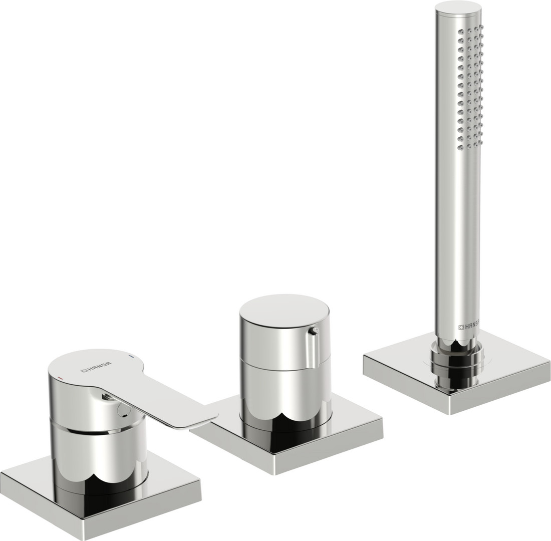 HANSA Fertigmontageset HANSALIGNA 3-Loch-Wannen-Einhebelmischer, Rosette eckig, chrom