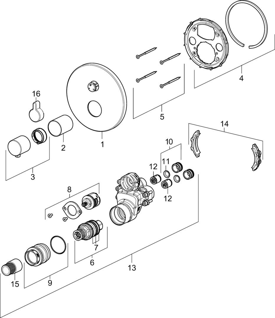 HANSA Fertigmontageset HANSAVAROX PRO UP-Brause-Thermostat, Rosette rund, chrom