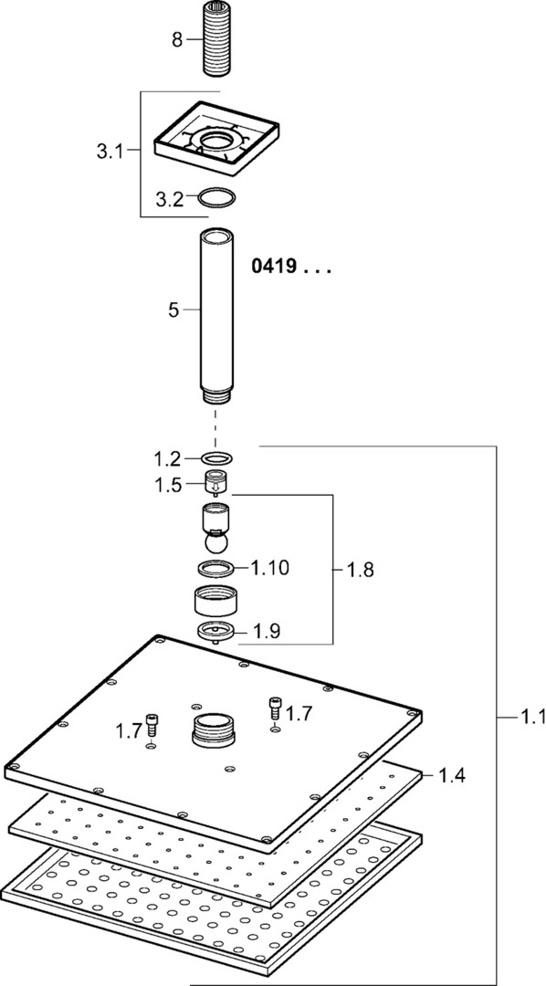 DN 15, Heißwasserversorgung max. 65°C, Arbeitsdruck 0,5-10 bar, Durchlfuss bei 3 bar (mit Regler) 12 l/min, Anschlussgröße G1/2, Länge (mm) 70-190 mm, Geräuschklasse II (ISO 3822), Material Messing, Kopfbrause, Eco-Durchfuss, schwenkbares Kugelgelenk, Anti-Kalk-Technik, verstärkte Ausführung, kürzbar, 1-strahlig, Außengewinde, Abdeckung(en), Rosette eckig