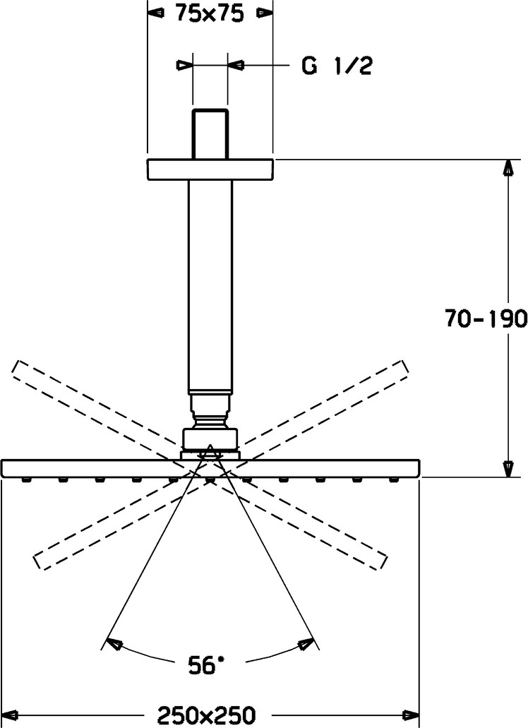 HANSA Kopfbrause HANSAVIVA 250 x 250 mm, 70-190mm, Deckenmontage, 1-strahlig, chrom