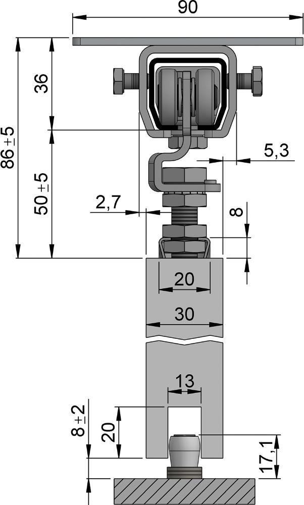 HELM 100 Schiebegarnitur verz. blau, 1-flg. Bis 100 kg,Decke, 4000 mm K23899255