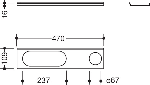 adaptive Zusatzfunktion für Waschtischprofile 950.13.0001 und 950.13.0009 oder Wandprofile 950.13.001.., kann in das Profil ein- und ausgehängt werden, Loch für Becher oder Seifenspender des Systems 800 K, Langloch für Duschkorb des Systems 800 K, belastbar bis 2 kg