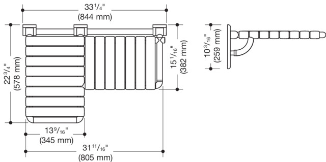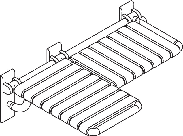 HEWI Duschklappsitz, L-förmig (ADA), Polyamid, hochglänzend, schmaler Sitzteil 460 mm breit und 382 mm tief, vorstehender Sitzteil 345 mm breit und 578 mm tief, vorstehender Sitzteil links, in HEWI Farbe 86 (Sand)