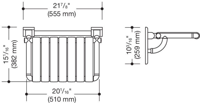 HEWI Duschklappsitz, rechteckig (ADA), Polyamid, hochglänzend, Breite 510 mm, Tiefe 382 mm, in HEWI Farbe 86 (Sand)