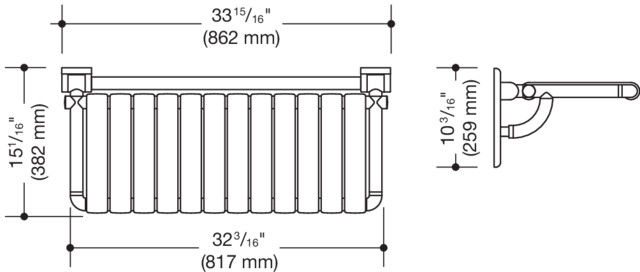 HEWI Duschklappsitz, rechteckig (ADA), Polyamid, hochglänzend, Breite 817 mm, Tiefe 382 mm, in HEWI Farbe 92 (Anthrazitgrau)
