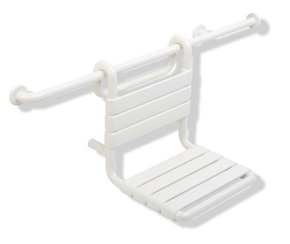 HEWI Einhängesitz (USA), Polyamid, hochglänzend, Sitzfläche 448 mm breit, 354 mm tief, zum Einhängen in Duschhandläufe und Haltegriffe (USA), Stangendurchmesser 33 mm, in HEWI Farbe 33 (Rubinrot)