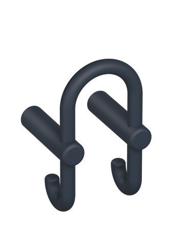 zwei Kunststoffstifte mit bügelförmigen Haken, Verletzungsschutz durch nach hinten zeigende Haken, 90 x 165 x 95 mm, Achsabstand 75 mm, aus mattem Polyamid