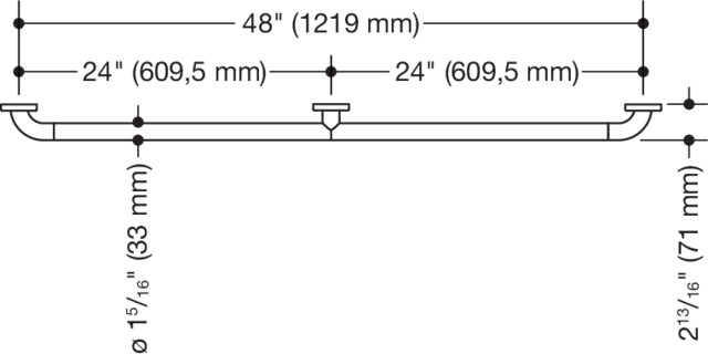 HEWI Haltegriff (ADA), Polyamid, hochglänzend, Achsmaß 1219 mm, Tiefe 71 mm, Stangendurchmesser 33 mm, in HEWI Farbe 33