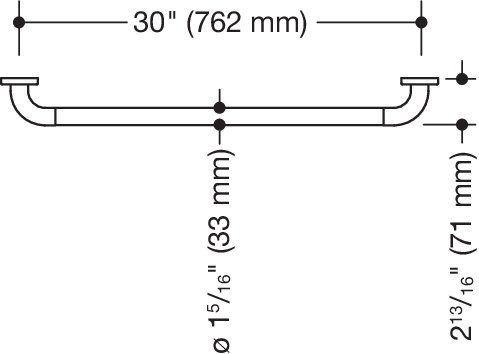 HEWI Haltegriff (ADA), Polyamid, hochglänzend, Achsmaß 762 mm, Tiefe 70 mm, Stangendurchmesser 33 mm, in HEWI Farbe 33 (Rubinrot)