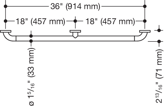 HEWI Haltegriff (ADA), Polyamid, hochglänzend, Achsmaß 914 mm, Tiefe 70 mm, Stangendurchmesser 33 mm, in HEWI Farbe 33 (Rubinrot)