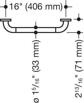 HEWI Haltegriff (ADA), Polyamid, matt, Achsmaß 406 mm, Tiefe 70 mm, Stangendurchmesser 33 mm, in HEWI Farbe 92 (Anthrazitgrau)