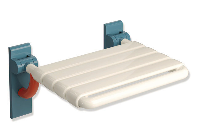 HEWI Klappsitz 801 478x428cm, Polyamid, aquablau/reinweiß/koralle