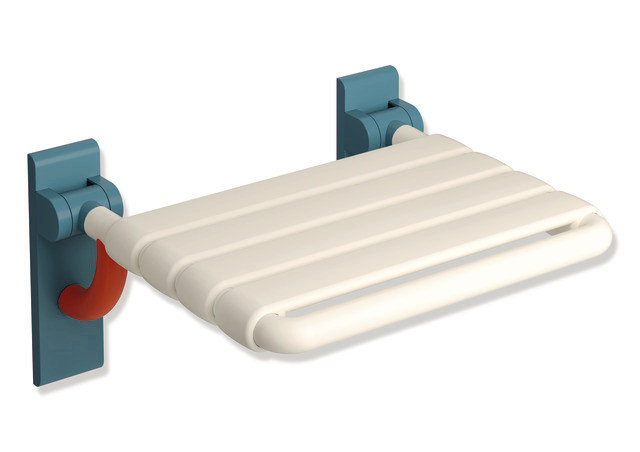 HEWI Klappsitz 801 478x448cm, Polyamid matt, aquablau/reinweiß/koralle