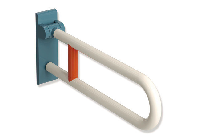 HEWI Stützklappgriff 801 600 mm, reinweiß/aquablau/koralle, Polyamid