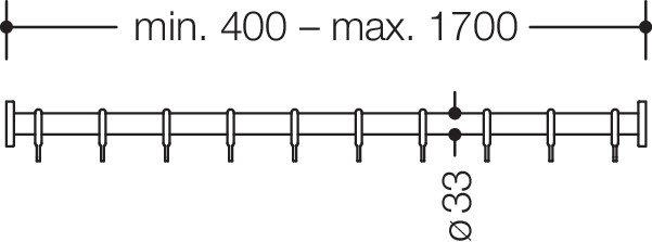 aus Polyamid mit Aluminiumkern, Länge auf Maß gefertigt von min. 400 mm bis max. 1700 mm, ohne Deckenabhängung, ø 33 mm, Rosetten ø 70 mm, mit entsprechender Anzahl Vorhangringe